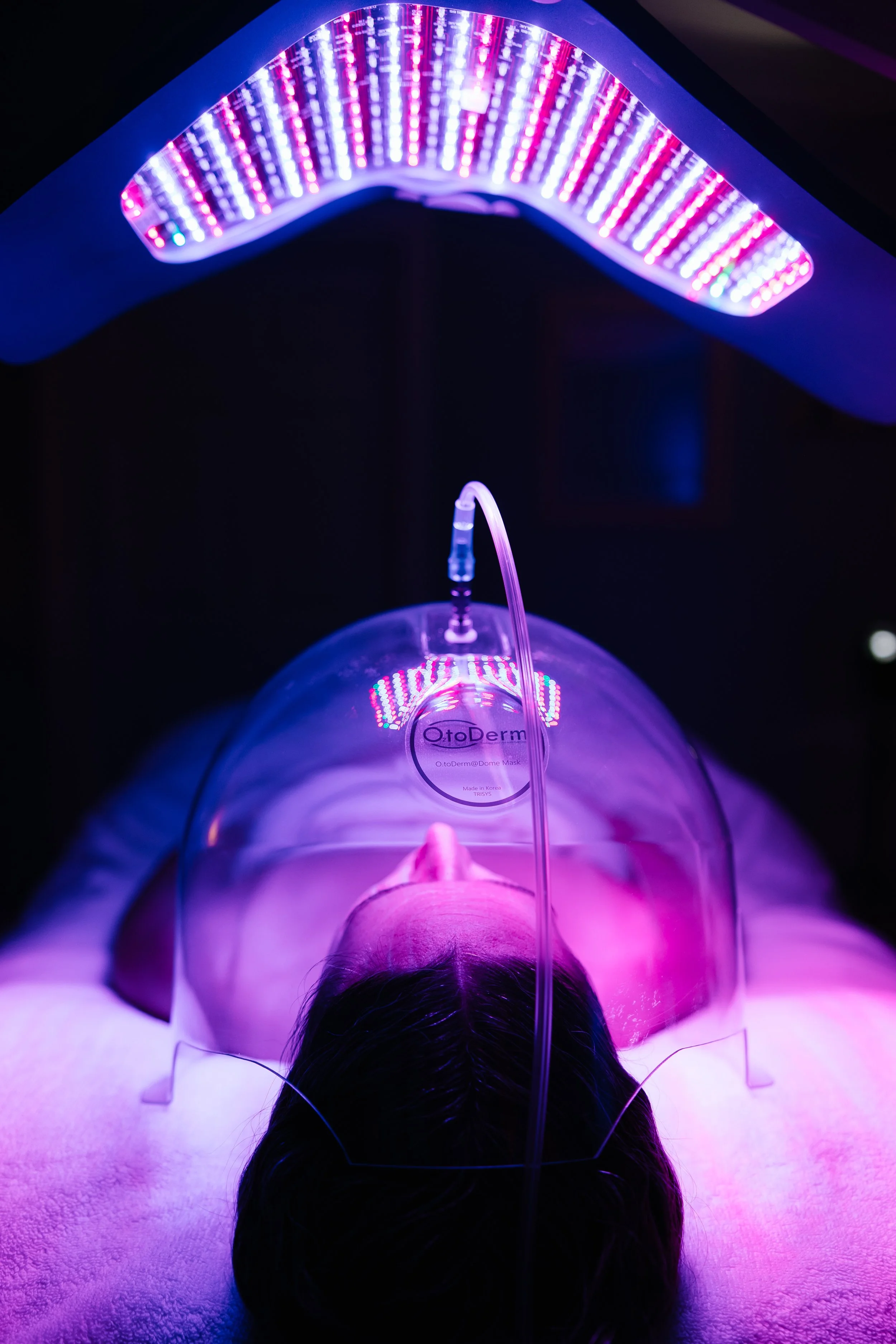 Oxygen Dome Therapy delivers highly concentrated anion (negative ion) oxygen over the skin to boost circulation, support cellular repair, and enhance overall skin vitality. The negative ions help neutralize free radicals, reduce inflammation, and promote a clearer, calmer complexion. This treatment increases oxygen uptake in the skin, improves hydration, brightens dullness, and gives an immediate revitalized glow.